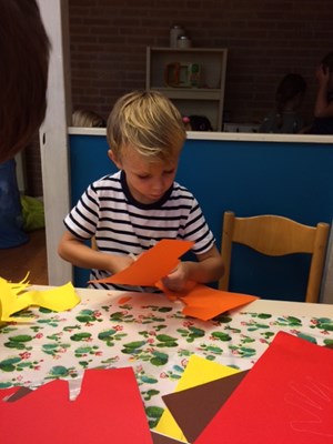 kabouterkleding, heksenkleding, takken, kastanjes, eikels, blaadjes, grote takken om een hut te bouwen.