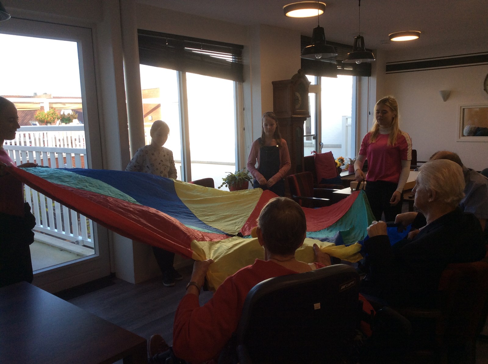 Vrijdag gingen er 6 kinderen van groep 8 naar Magenta. Daar mochten we allerlei activiteiten doen met de bewoners. Dat was wel even spannend, maar we hebben het onwijs leuk gehad! We gingen schaken, met een parachute een balletje hooghouden, een ballon overslaan en buiten wandelen.