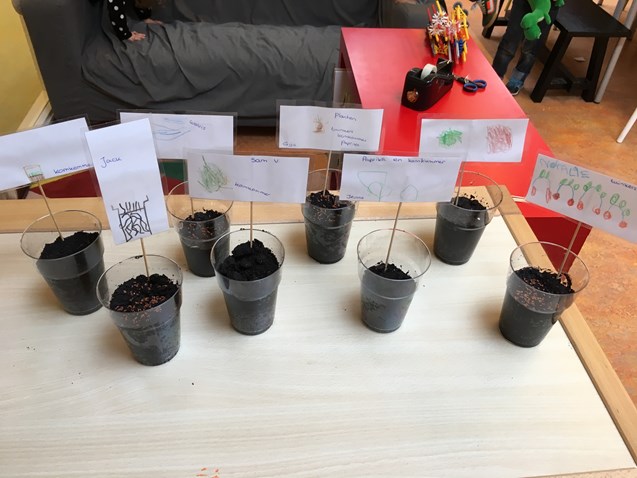 Eind van de week hadden we zaadjes geplant. Komkommer-, paprika- en tuinkerszaadjes in potgrond en daarna een voorspelling gedaan van hoe het zal worden. Spannend hoe het er volgende week uit ziet!