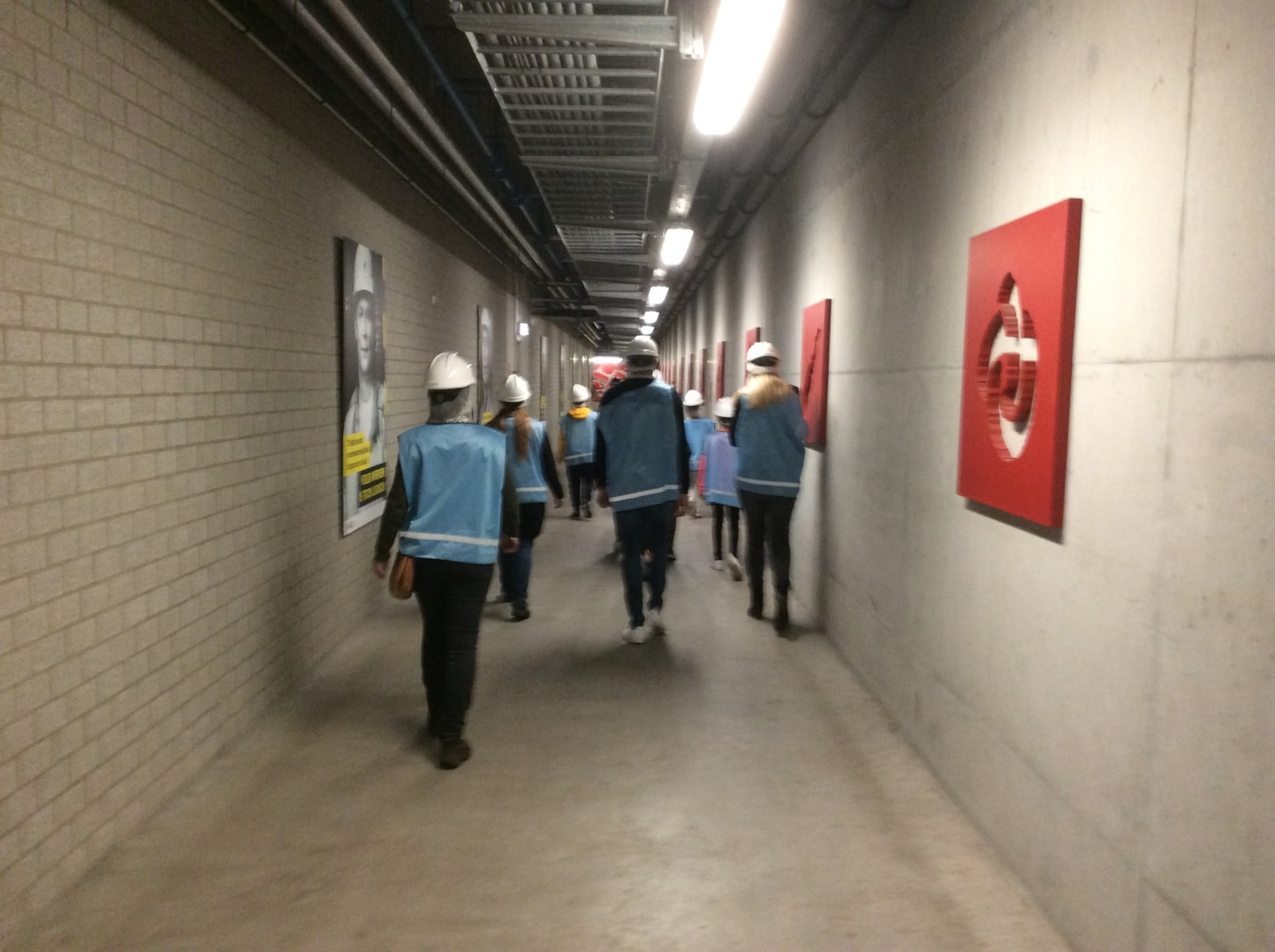 Vervolgens haarnetje en helm op, veiligheidshesje aan en ontvanger in de oren. We hebben veel interessante (en warme) plekken gezien, veel informatie gekregen en veel trappen beklommen.