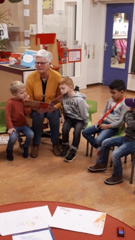 Op woensdagochtend hadden we sinds de kinderboekenweek een voorleesoma in de klas.Dit was in het kader van 50+ leest voor, georganiseerd door de bibliotheek in samenwerking met de scholen. In groep 1-2 A was dat Hanny Kaan, de oma van Bram en Tess.( Tess zit in de bovenbouw en Bram zat bij ons op school). We verheugden ons elke woensdag weer om gezellig te luisteren naar een prachtig verhaal en ook naar een mooi versje van Annie M.G. Schmidt. Dank hiervoor, juf Hanny!