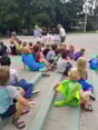 Nadat het ijsje op was, konden de kinderen allerlei spelletjes gaan doen op het schoolplein: blikgooien, touwtrekken, sponzen gooien, schat zoeken in de zandbak, spelen met de waterbaan en nog veel meer.