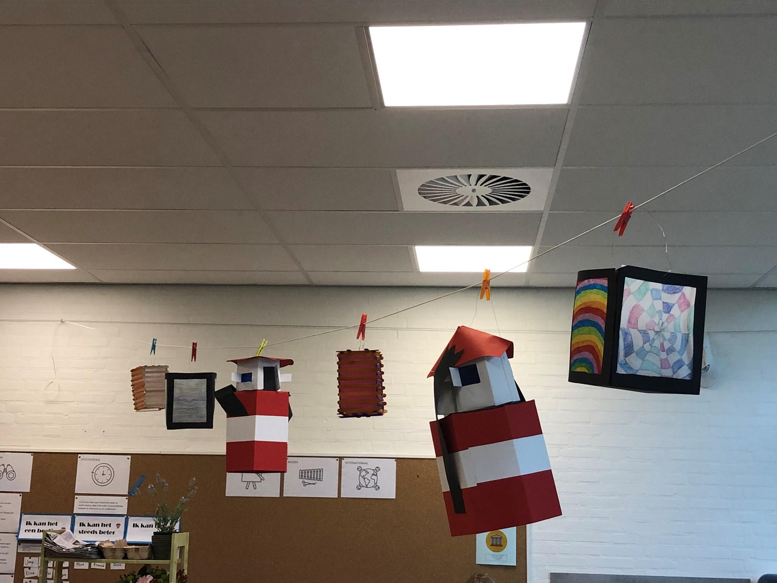 We hebben ook onze lampion afgemaakt, zodat we in ieder geval 11 november langs de deuren in ons eigen huis kunnen gaan. Ze hangen nu al mooi in de klas.
