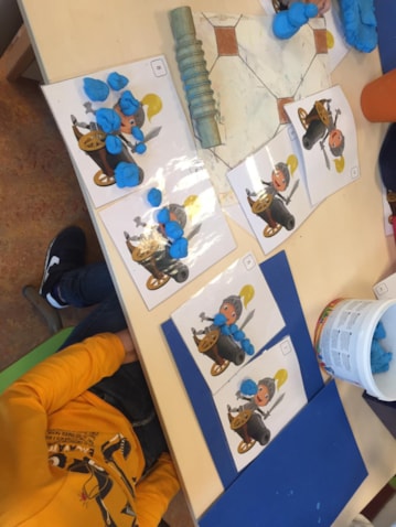 We kennen nu veel woorden over de ridders. Wat is een troubadour en wat is een nar? De kinderen kunnen het vertellen. De woordjes hebben we ook in lettergrepen verdeeld en aan de hand van blokken visueel gemaakt. Ook hebben we de letter r van ridder geleerd. Naast het woordje ridder kennen de kinderen nog veel meer woorden met de letter r.