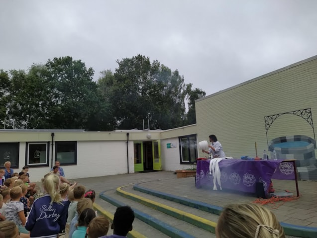 Wauw, de allereerste week van groep 3 zit er alweer op. Alles was nieuw! Plekjes, eigen laadjes, kapstokplaatsje! Maandag was dat nog wel erg spannend, maar al gauw merkten we dat het hartstikke leuk is. En wat hebben we al veel geleerd. De i, k, m en de s! We maakten deze week onze verjaardagskalenders. Nu zweven we met z’n allen door het lokaal in een luchtballon. We leren elkaar ook al beter kennen met kanjerspelletjes en schrijven de letters al zoals ze horen. Op donderdagochtend werden we getrakteerd op een Mad Science show en hebben we alles geleerd over luchtdruk. Die gekke professor liet zelfs zeep op gaan in vuur! Heel knap! Vrijdag voor het eerst op het schoolplein gegymd en dat was heerlijk. Een waterestafette gedaan, gevoetbald en lekker met het springtouw aan de gang! Kortom een goed begin gemaakt!