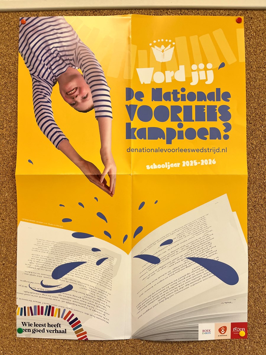 Wie wordt onze voorleeskampioen? De inschrijflijst voor de voorleeswedstrijd hangt inmiddels in de klas. Iedereen die mee wil doen, mag zich inschrijven! We beginnen met een klassenronde. De twee winnaars daarvan gaan door naar de finale, waarin ze het opnemen tegen de winnaars uit groep 6 en 8. Deze spannende finale vindt plaats in de aula, waar de hele school mag komen kijken én meebeslissen wie onze uiteindelijke voorleeskampioen wordt!
