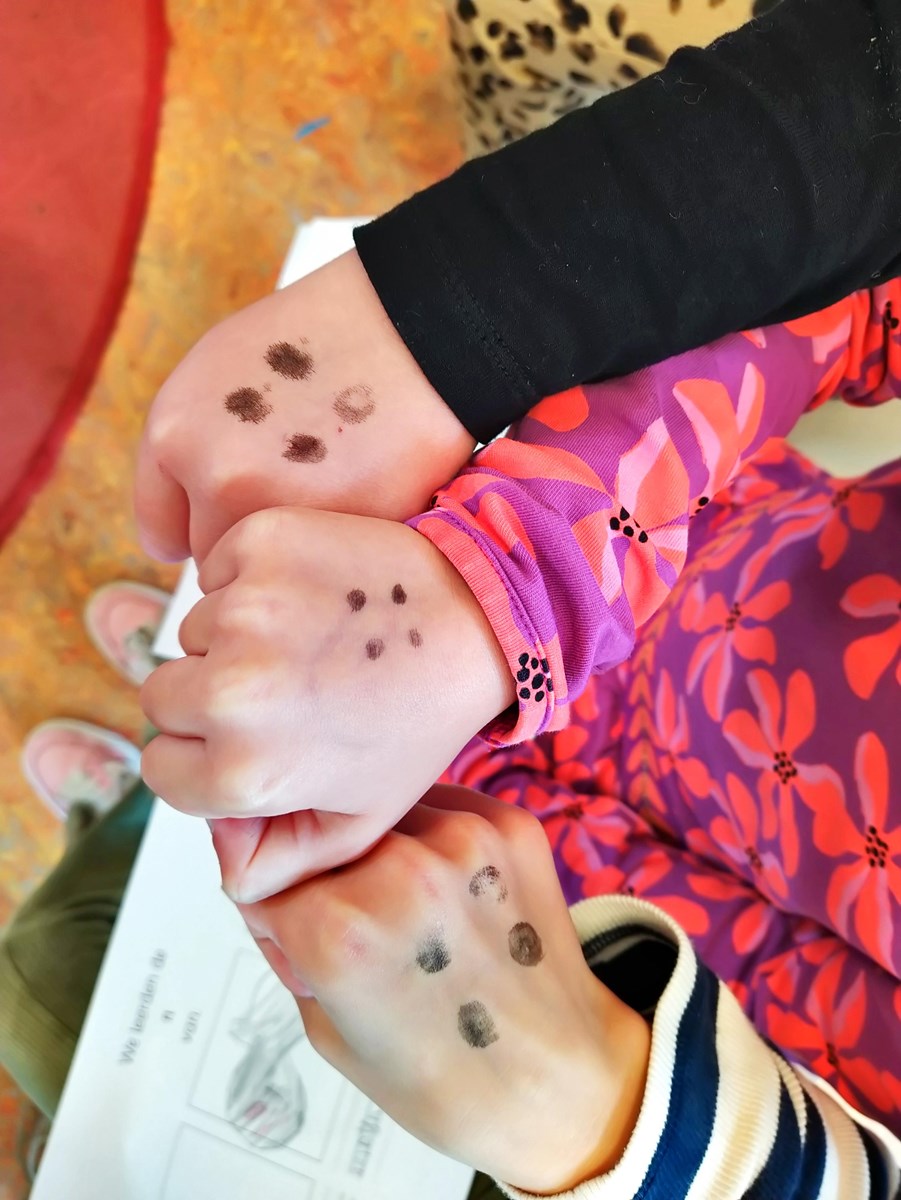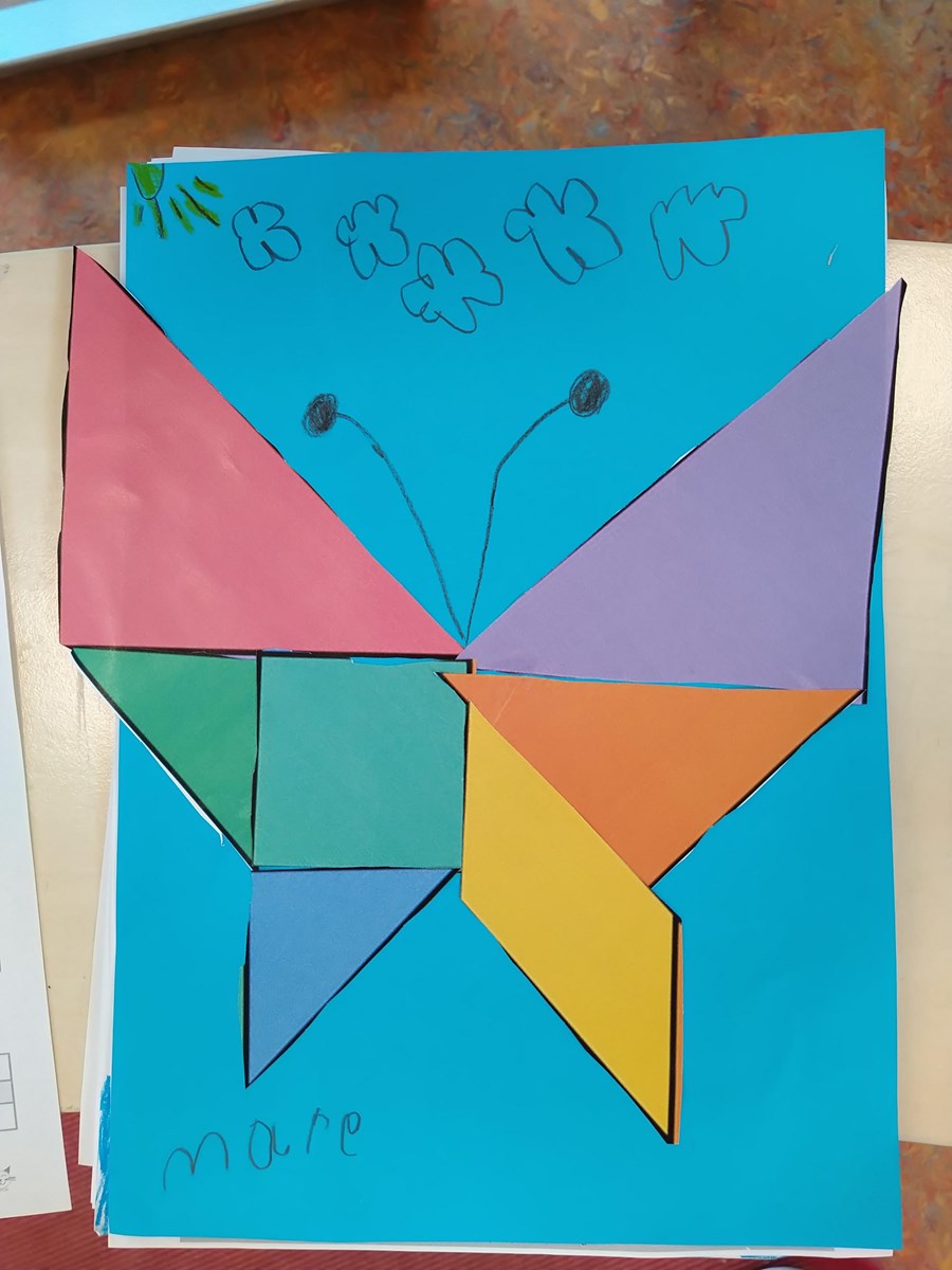 Afgelopen week maakten de kinderen kennis met een Chinese puzzel: Tangram. Hiermee maak je de leukste en gekste creaties. We maakten de letter /b/ in ons schrijfschrift en alle cijfers zijn aangeleerd! Ook waren wij allemaal dirigenten. Als warming-up voor de schrijfles mochten de kinderen hun potlood gebruiken om figuren te maken op muziek en in een ritme! De klas hangt vol met allemaal zeedieren, dat is voor ons toneelstuk die we binnenkort gaan opvoeren. (De exacte datum zal nog gecommuniceerd worden). Woensdagochtend vormden we een grote rij en zwaaiden we groep 8 uit, die gezellig op kamp gingen. In de gymzaal hebben we veel spellen tegen elkaar gedaan; Hockey, voetbal en stoeien op de mat of samenwerken met turnen. Op vrijdag stonden de vier stippen van de Stip-it actie centraal. Samen stonden we op tegen pesten. En speelden we een verzamelspel met de hele klas met de buitengym.