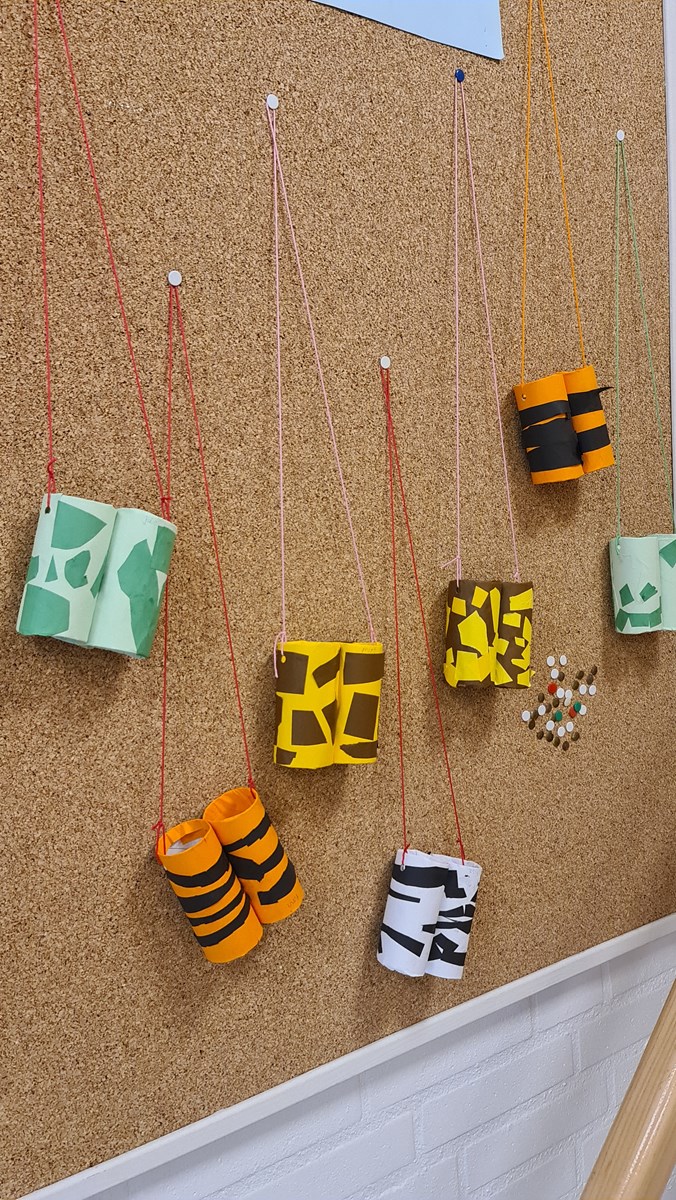 De laatste verrekijkers zijn afgemaakt en hangen nu aan het prikbord in de klas. Wat zijn ze mooi geworden!