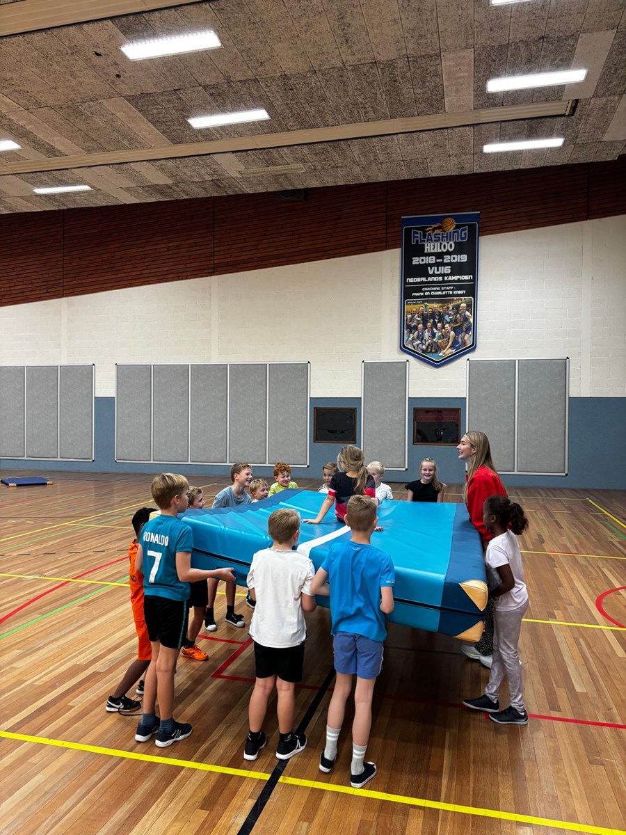 In de klas werken de kinderen regelmatig samen in kleine groepjes. Bijvoorbeeld in tweetallen lezen, overleggen over een antwoord of quizvragen bedenken voor Nieuwsbegrip (= begrijpend lezen). Voor sommige kinderen is dit soms best nog lastig. Goed naar elkaar luisteren, op een goede manier de leiding nemen, je stem laten horen.... Belangrijk om - ook op school - hiermee te oefenen. Zelfs tijdens gym komen samenwerkingsvaardigheden van pas (zie foto’s).
