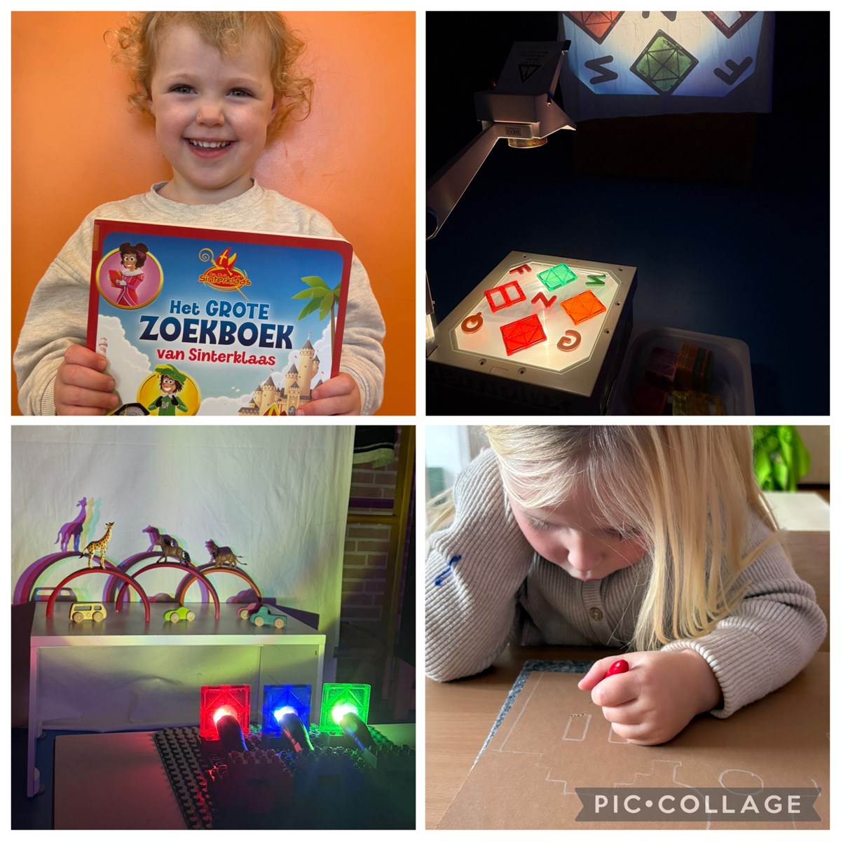Ook komt Sinterklaas weer in het land dit weekend. We zijn heel voorzichtig begonnen met het oefenen van Sinterklaas liedjes en hebben een aantal fragmenten uit het Sinterklaasjournaal laten zien. Wat een pech dat alle puzzels door elkaar liggen! Maar gelukkig hebben wij hele goede puzzelaars op de groep. Leuk om de kinderen op deze manier iets meer aan te sporen om te puzzelen. Een puzzel maken is naast een moment van rust ook een goed moment voor een gesprek. Welke kleuren zie je op de puzzel en ligt het stukje wel op de goede plek? Puzzelkoning Vito kan goed uitleggen hoe je een puzzel moet maken. Ook aan de andere kinderen legt hij zijn tactiek uit. Er ontstaat een mooie interactie tussen de kinderen.