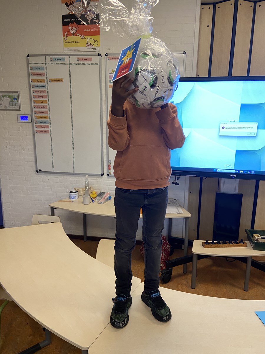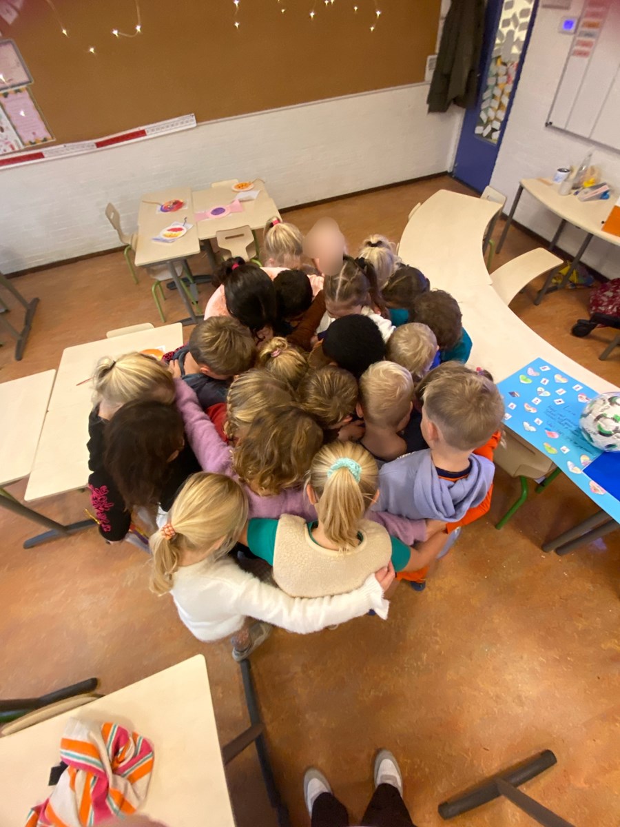 Op maandag genoten we van lichtjesavond. Het was een hele gezellige avond. De klas was mooi versierd en de lampionnen zagen er prachtig uit. Dinsdagavond mochten de kinderen eindelijk met hun lampion langs de deuren. Het was spannend, maar iedereen heeft het super leuk gehad. Na Sint Maarten was het dan echt zover om ons langzamerhand voor te bereiden op het afscheid van Aram. Vrijdagmiddag stond in het teken van afscheid nemen en dat is best nog wel lastig. In het geheim hebben we voor Aram geknutseld. De kinderen hebben gewerkt aan een vriendenboekje, een blad met versierde hartjes en natuurlijk het allermooiste cadeau de voetbal. Wat een leuk initiatief om voor Aram een bal te kopen met alle namen van de klas. Hij was er dan ook ontzettend blij mee, maar tegelijkertijd was het afscheid heel erg moeilijk. Voor Aram, maar ook voor de kinderen. Wat gaan wij Aram missen. We wensen hem heel veel plezier op zijn nieuwe school en veel woongeluk in zijn nieuwe huis. Wie weet komen we elkaar nog een keertje tegen.