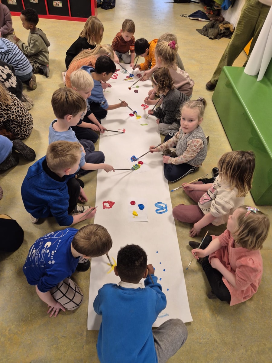 Deze week zijn we gestart met ons nieuwe thema Kunst. We trapten af met een ontzettend leuke themaopening, waarbij we meteen aan de slag gingen met het mengen van kleuren.