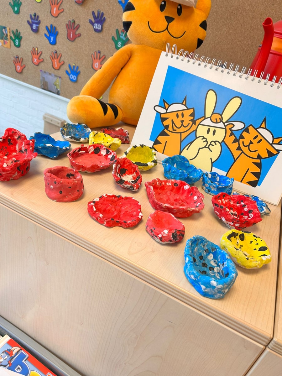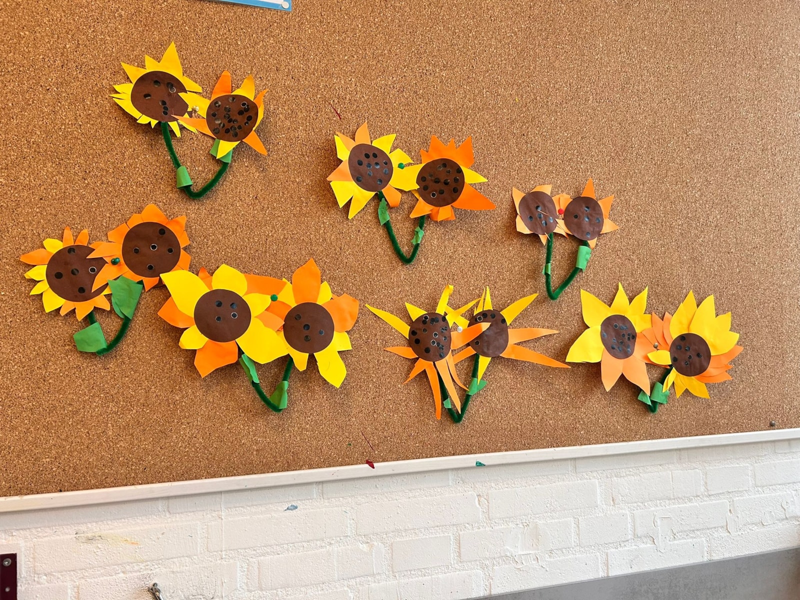 De kinderen hebben zonnebloemen geknutseld en onze kommetjes en bordjes gedecoreerd.