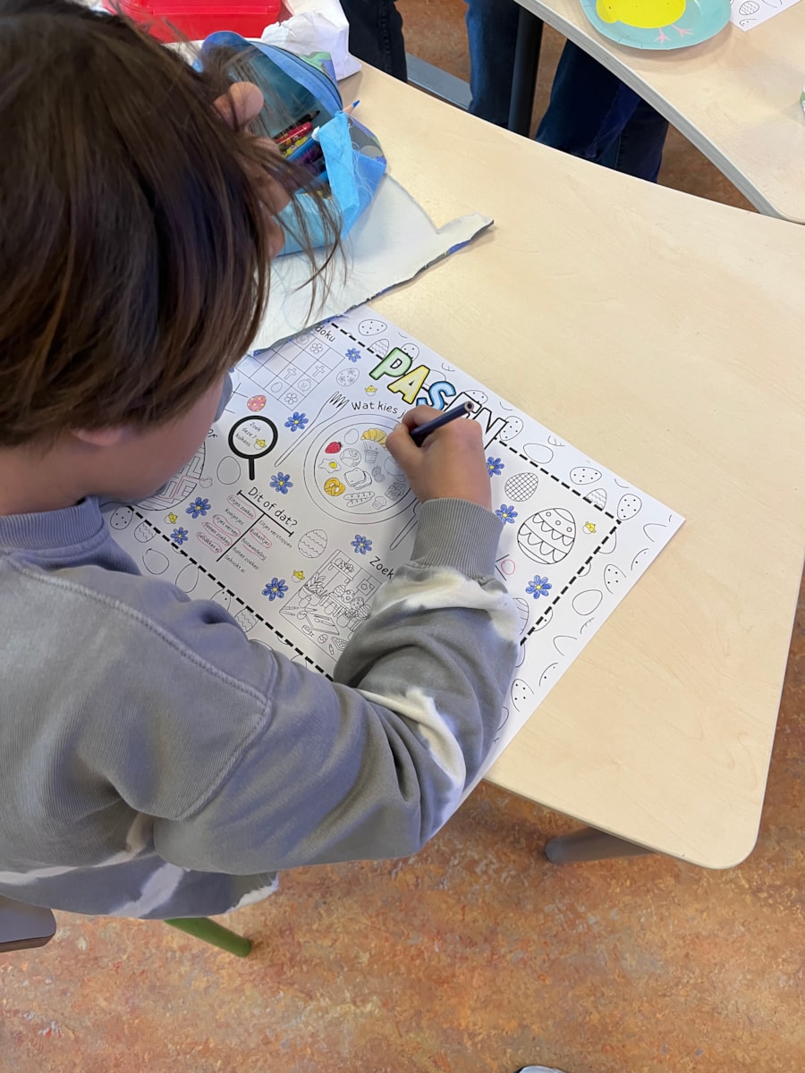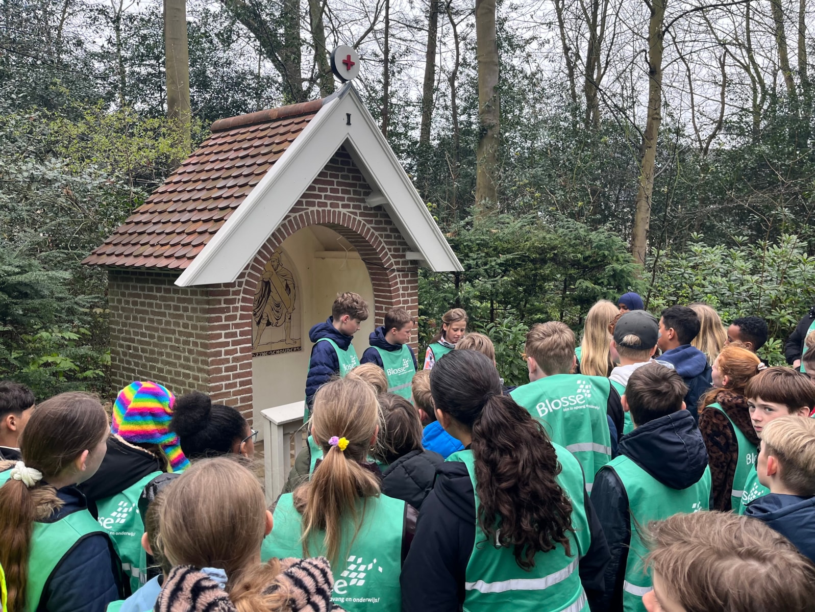 Donderdag stond volledig in het teken van Pasen. We begonnen de dag met een heerlijk paasontbijtje dat de kinderen voor elkaar hadden gemaakt. Daarna gingen we naar Onze Lieve Vrouw ter Nood, waar we langs de staties liepen. Bij elke statie vertelde een ander groepje een kort stukje van het paasverhaal.