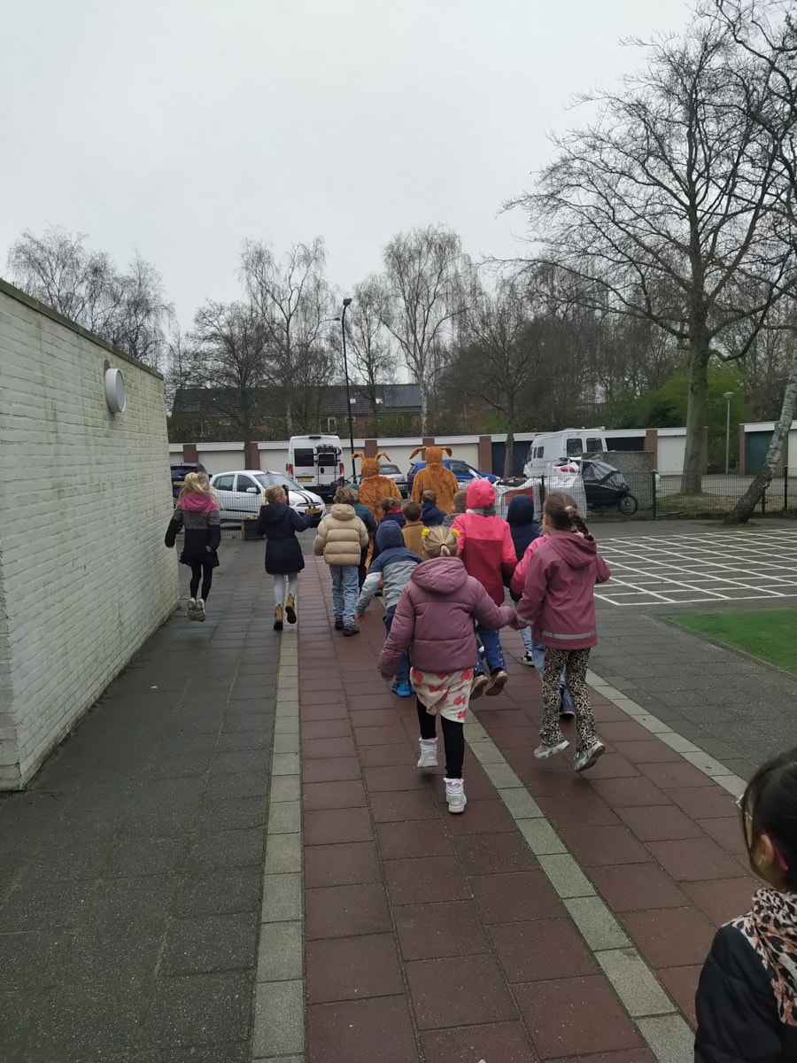 Wat een gezellige week hebben we weer beleefd. In de gymzaal speelden we verschillende spellen: hoepelbasketbal, 1 tegen 1 rugby en kwartetvoetbal. Dus alle balspelen passeerden de revue. De alpaca-race stond centraal tijdens het automatiseren; hierbij is het de bedoeling dat we met + en – sommen de alpaca vooruithelpen. De streepjesgetallenlijn heeft ook zijn intreden gemaakt, dus we kunnen nu heel snel grote getallen plaatsen tot en met 100. Het grote dikke streepje; tientallen, korte dikke streepje: 5-tallen en de dunne streepjes zijn de eenheden. Op 1 april lag het hele directiekamertje vol met ballonnen en zaten er een hele hoop veters los. Op donderdag keken we de zandtovenaar en aten ons heerlijke zelfgemaakte ontbijtje op. Ook hebben we eieren gezocht in de klas en bij de Bult. Een speurtocht door de school maakte de dag helemaal compleet.