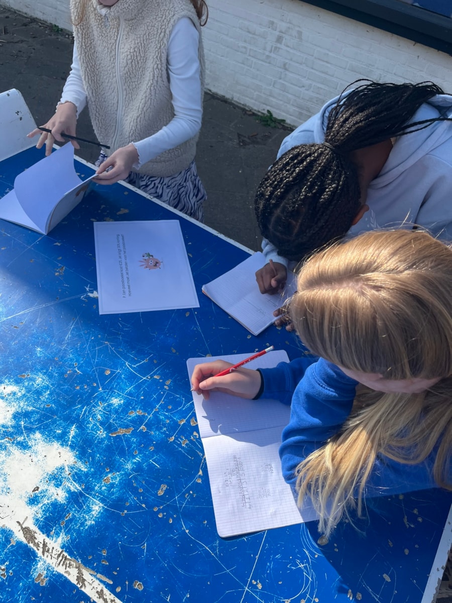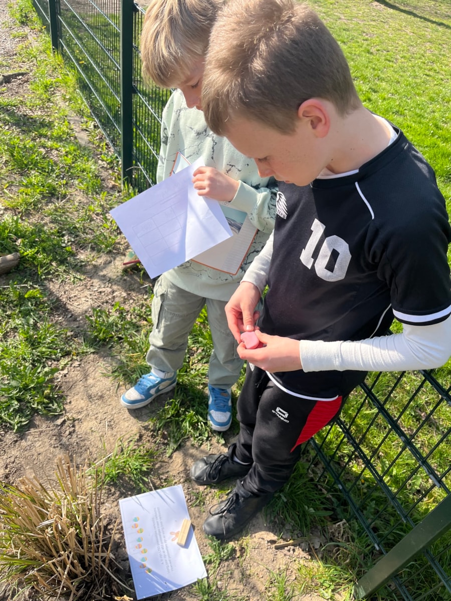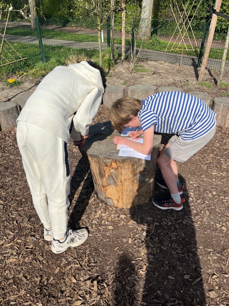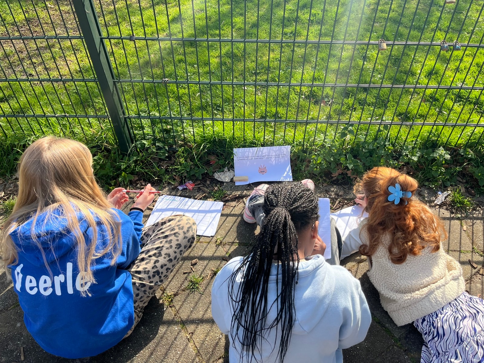 Het mooie weer kwam donderdag goed van pas tijdens de rekenles. We oefenden de afgelopen rekendoelen met een Zweeds renspel op het schoolplein, waarbij de kinderen al bewegend lerend zo snel mogelijk het antwoord op alle sommen (inclusief berekeningen) moesten inleveren.