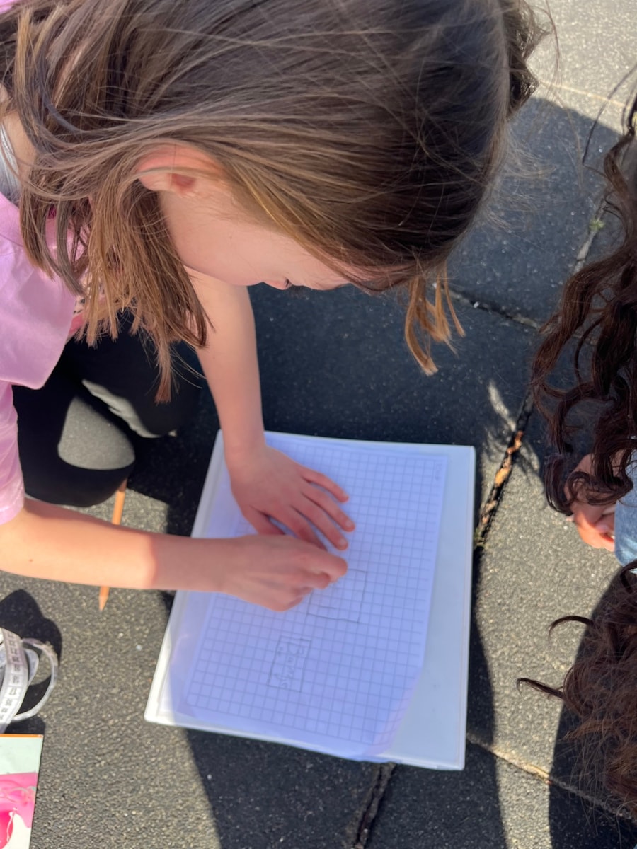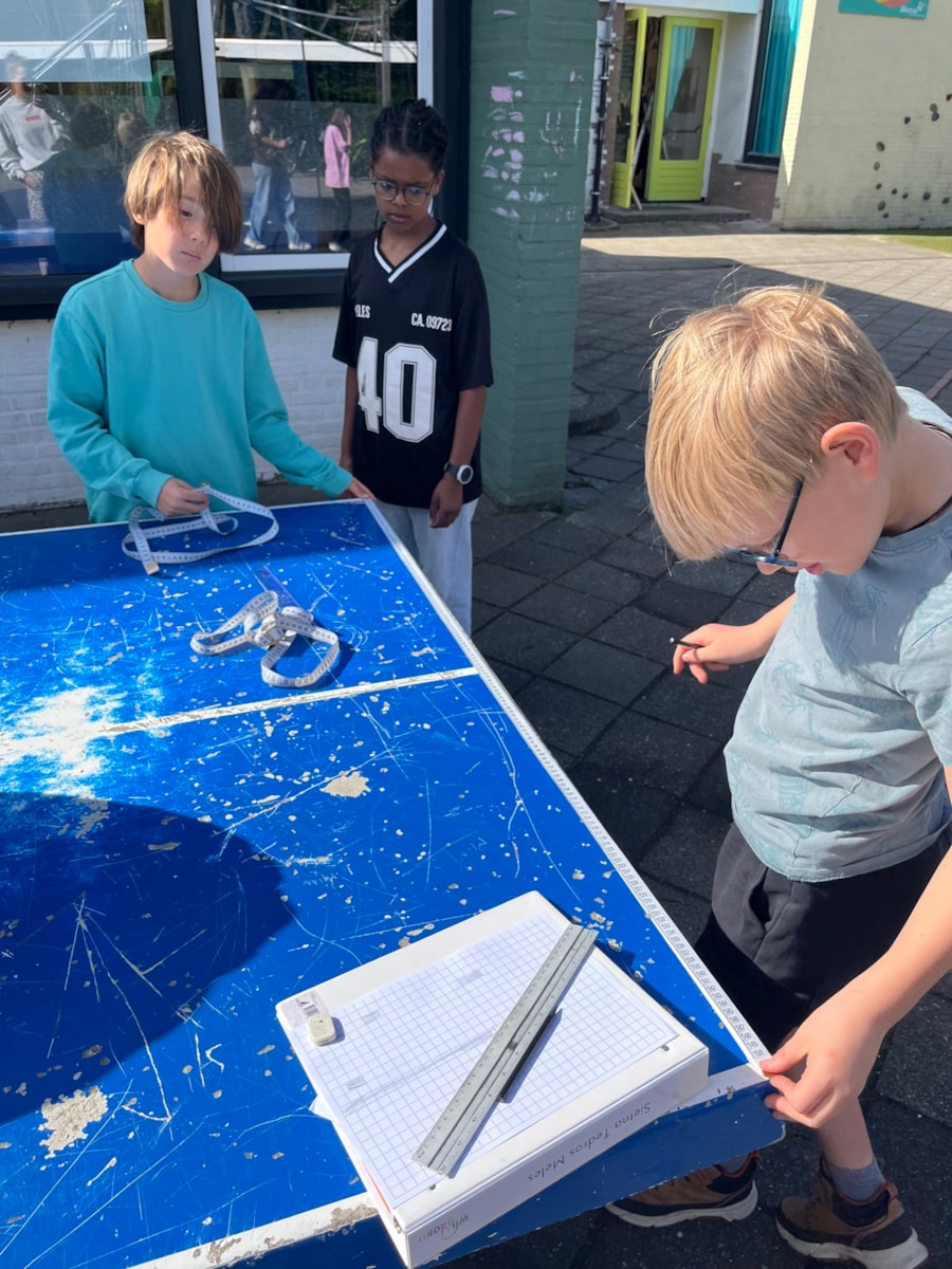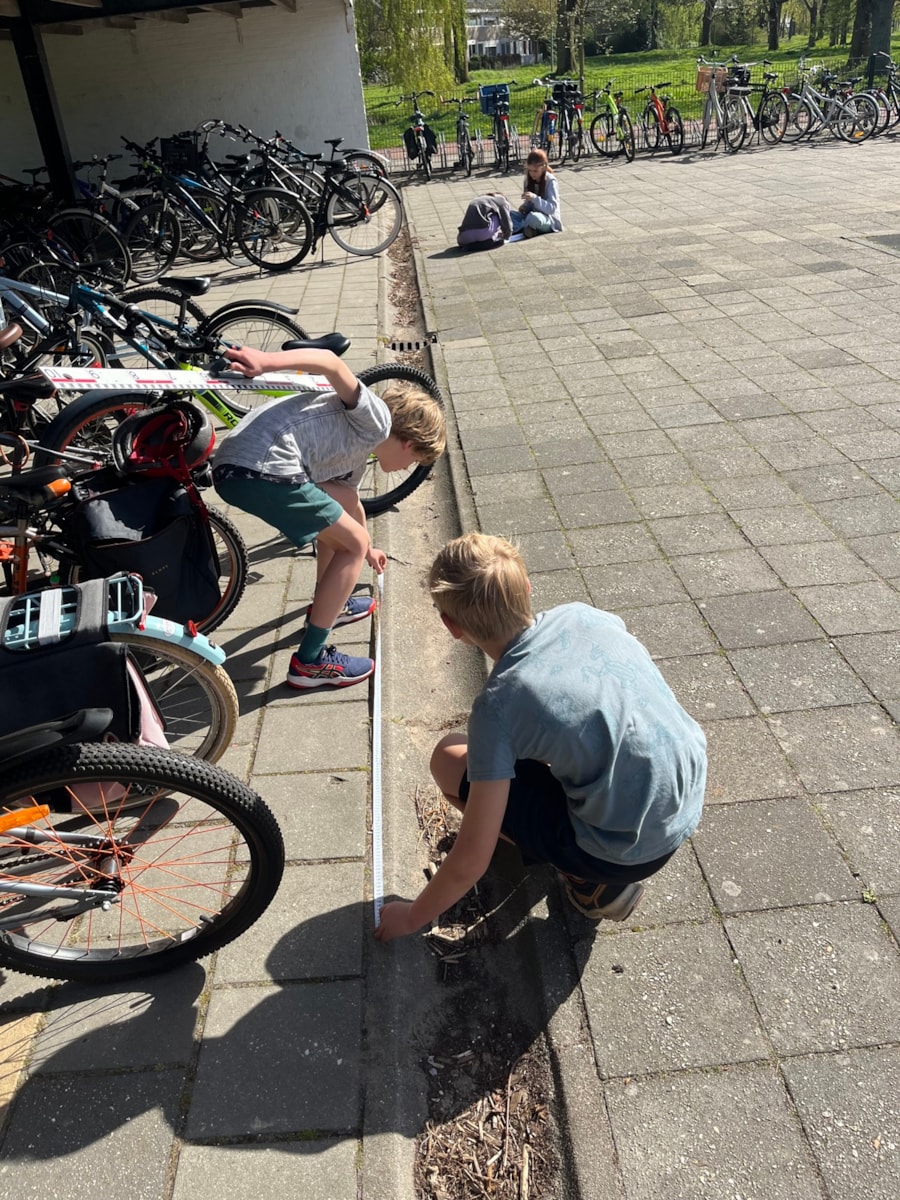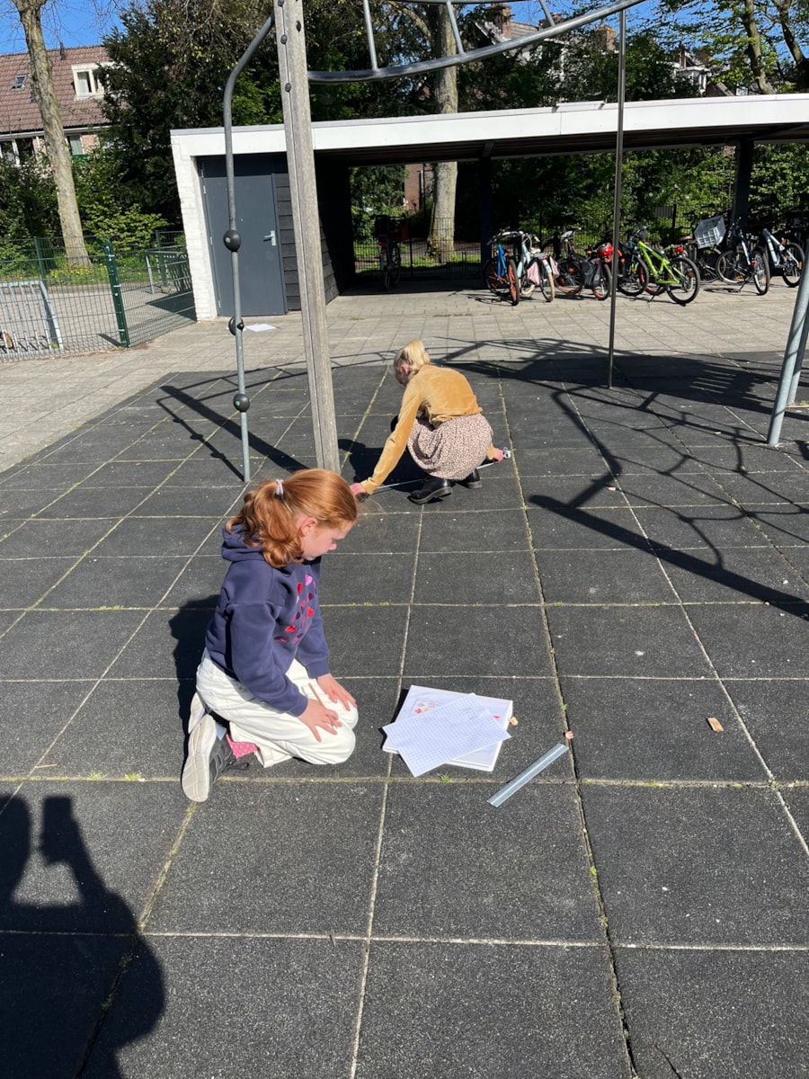Aangezien we wat problemen hadden met de wifi gingen we tijdens de rekenles van donderdag buiten aan de slag met het maken van een plattegrond van het schoolplein. Dit paste fantastisch bij de doelen. Hierbij oefenden de kinderen met schaalberekening en het berekenen van oppervlakte.
