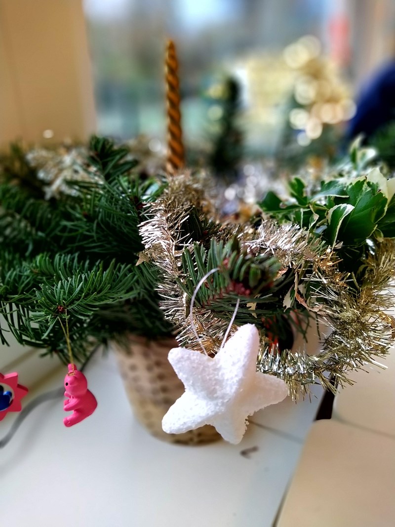 De laatste lesweek van 2025 stond in het teken van de Kerstviering. In de klas werd het reuze gezellig met al die kerstknutsels. De boom is mooi versierd.