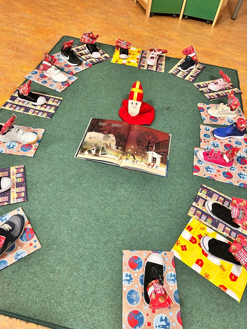 We hebben ook ons schoentje gezet. De volgende ochtend lag er een cadeau van Piet. Het was een telpiet! Op elke tafel had hij een cijfer geschreven…